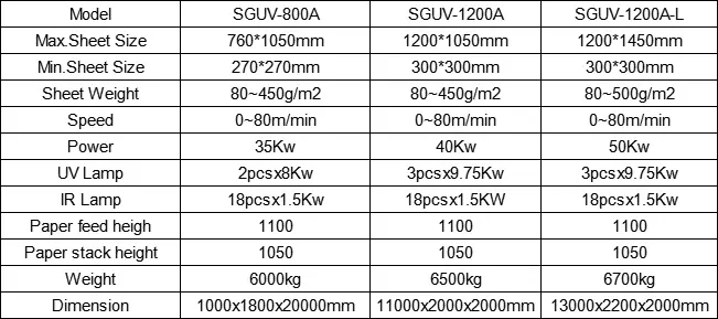 4 : Phần UV áp dụng 8-Nguồn ánh sáng điện tử có thể điều chỉnh 12kW, có hiệu suất an toàn được cải thiện đáng kể so vớinguồn ánh sángnguồn điện áp truyền thống. Nguồn ánh sáng có thể tự động điều chỉnh độ sáng khi thay đổi tốc độ chạy của máy, có thể thay đổi từ 30% đến 100%. Do đó, mức tiêu thụnăng lượng trung bình được tiết kiệm hơn 30%.